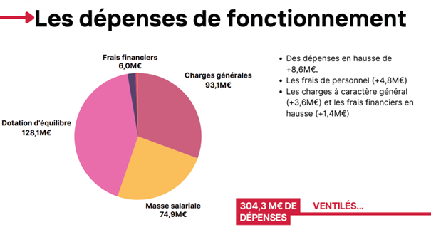 - des charges de personnel (74,9 M€) en hausse du fait du glissement vieillesse technicité et des recrutements nécessaires à l’extension de service public avec l’ouverture programmée de nouveaux équipements en 2025.