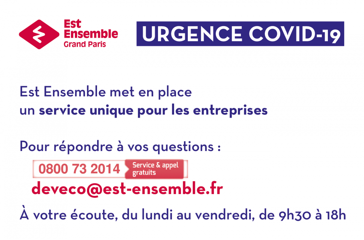 L'épidémie de Covid-19 a de lourdes répercussions sur l'économie du pays et des villes d'Est Ensemble. Pour aider les entreprises, commerçants, associations à y faire face localement, Est Ensemble et les villes du territoire se mobilisent.
