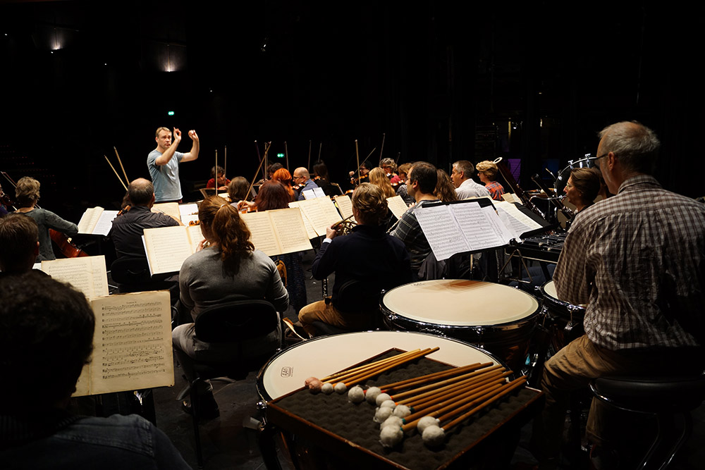 Le chef d'orchestre Olivier Holt lors des répétitions du Symphonique, l'orchestre des enseignants des conservatoires d'Est Ensemble.