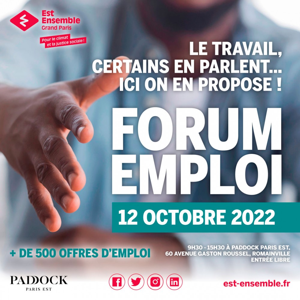 Le travail, on entend beaucoup parler actuellement… Ici, on vous en propose ! Le 12 octobre, Est Ensemble vous donne rendez-vous au Paddock Paris Est à Romainville pour un Forum emploi sur lequel vous retrouverez de normbreuses offres d'emploi et de formation.